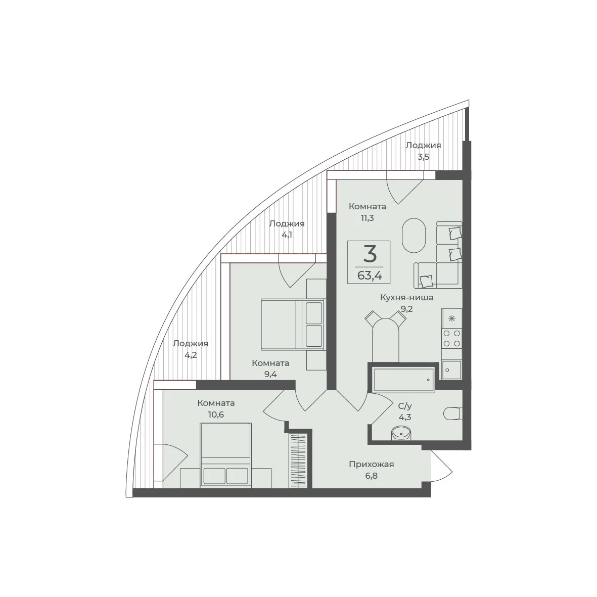 3‑комнатные апартаменты