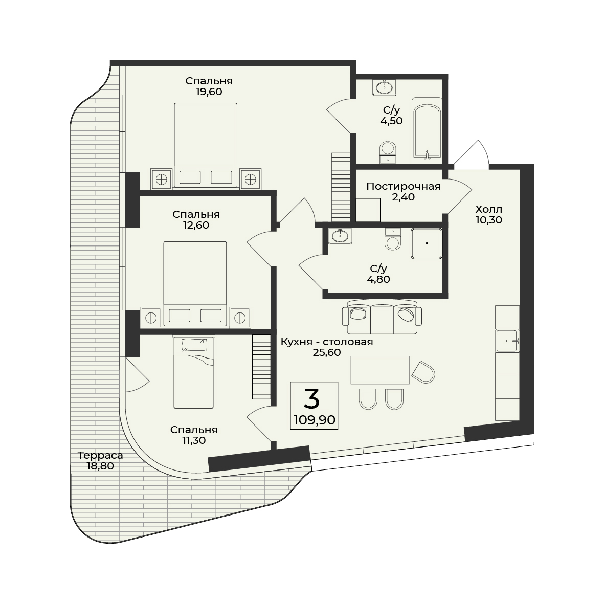 3-комнатная