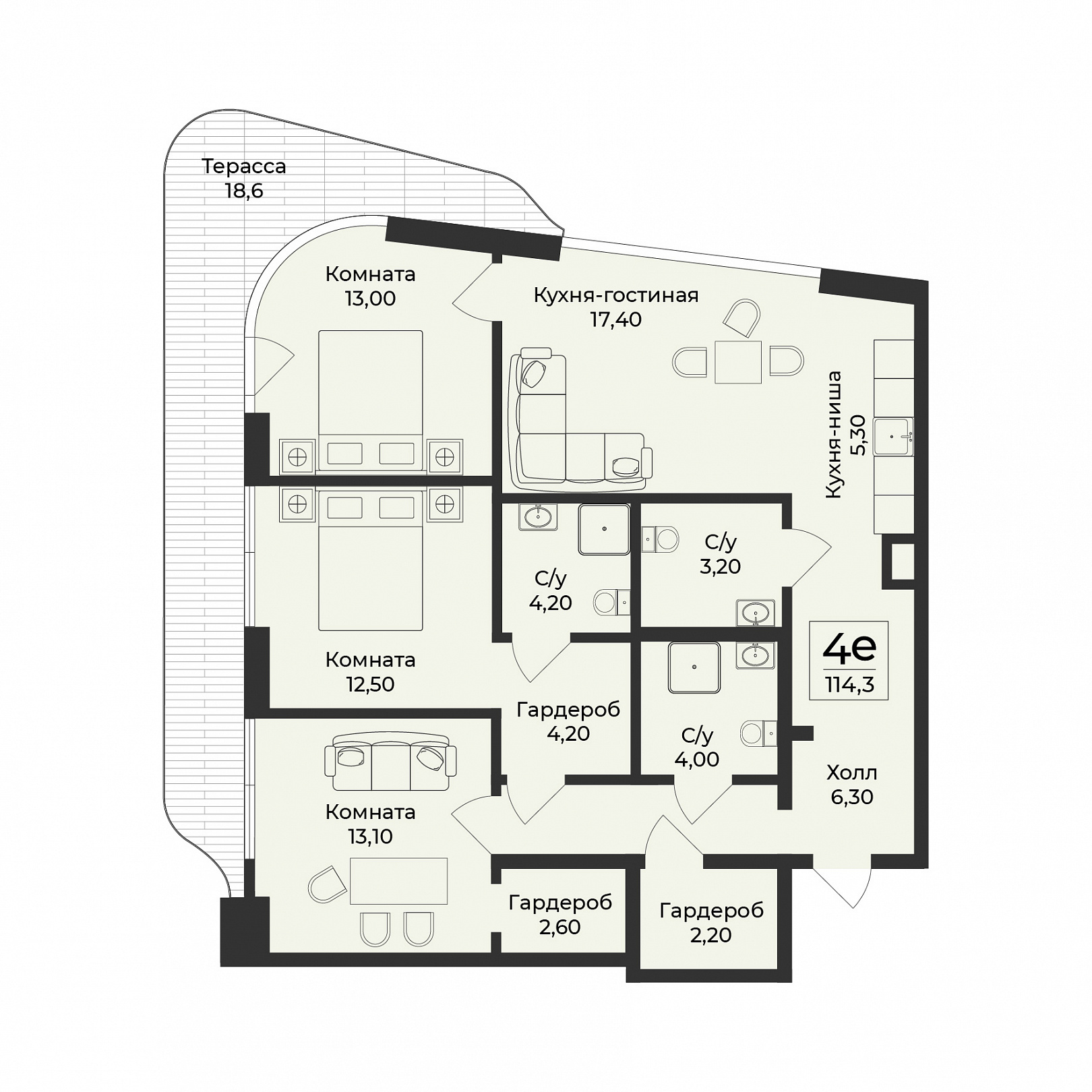 114.3 м2