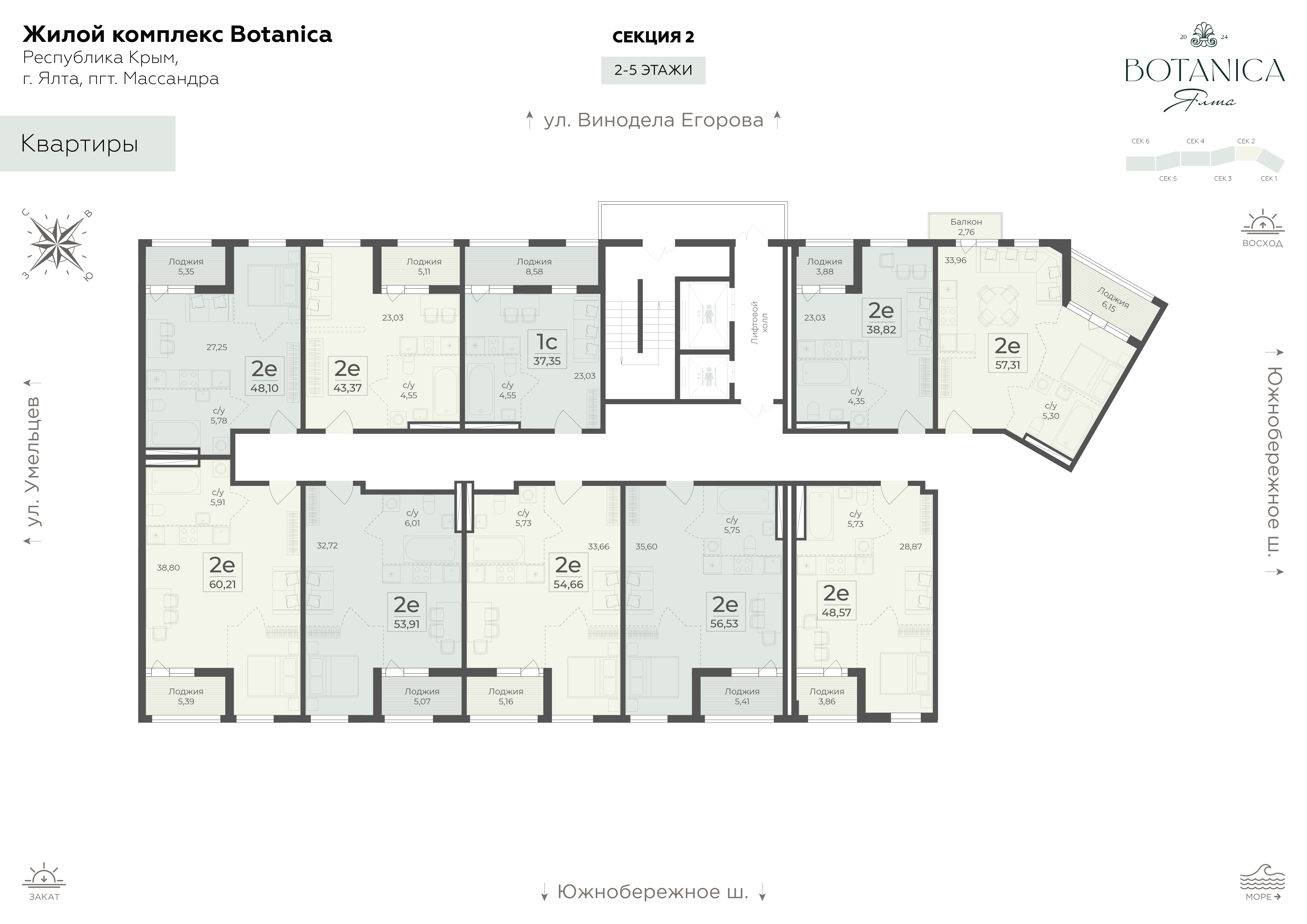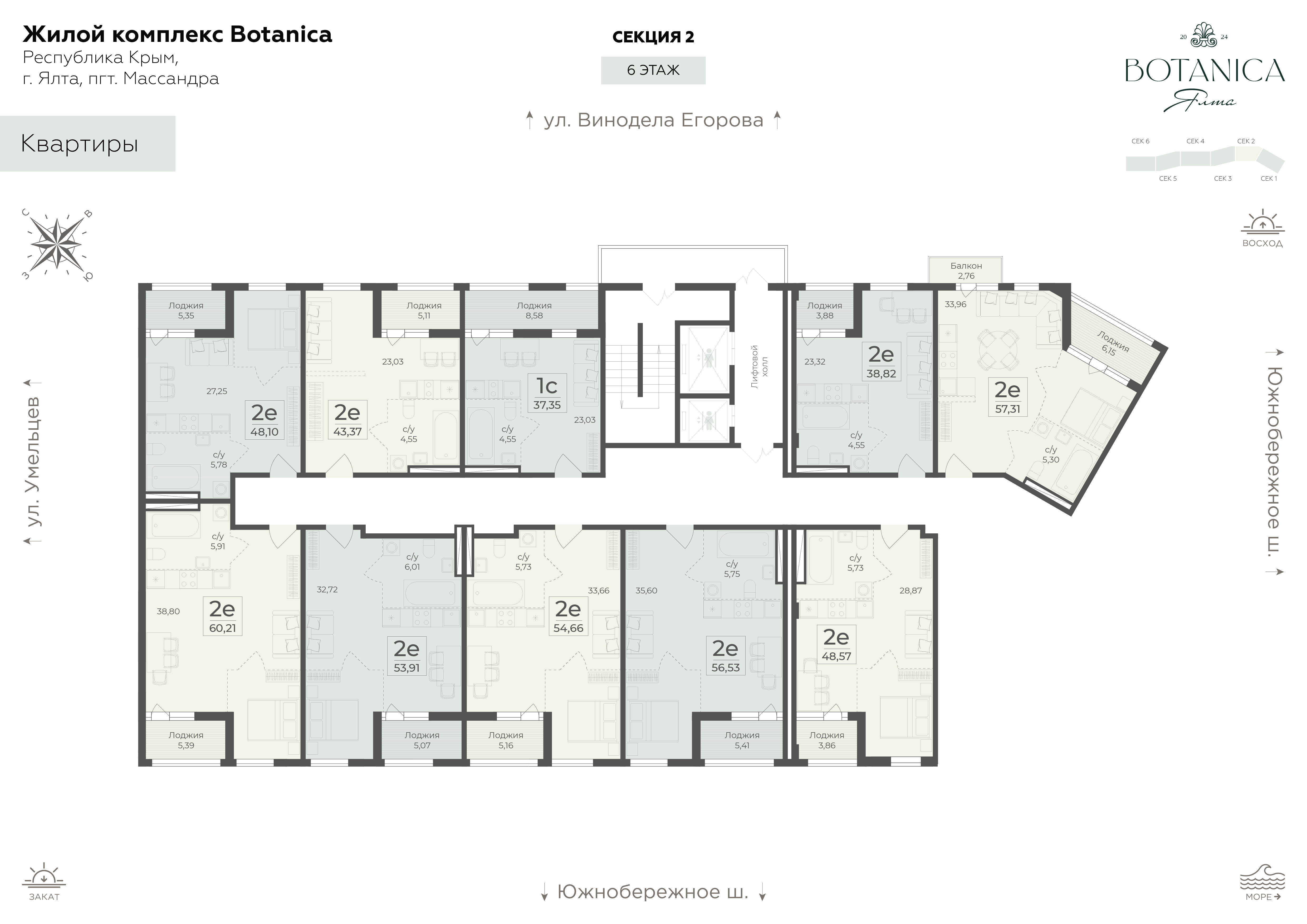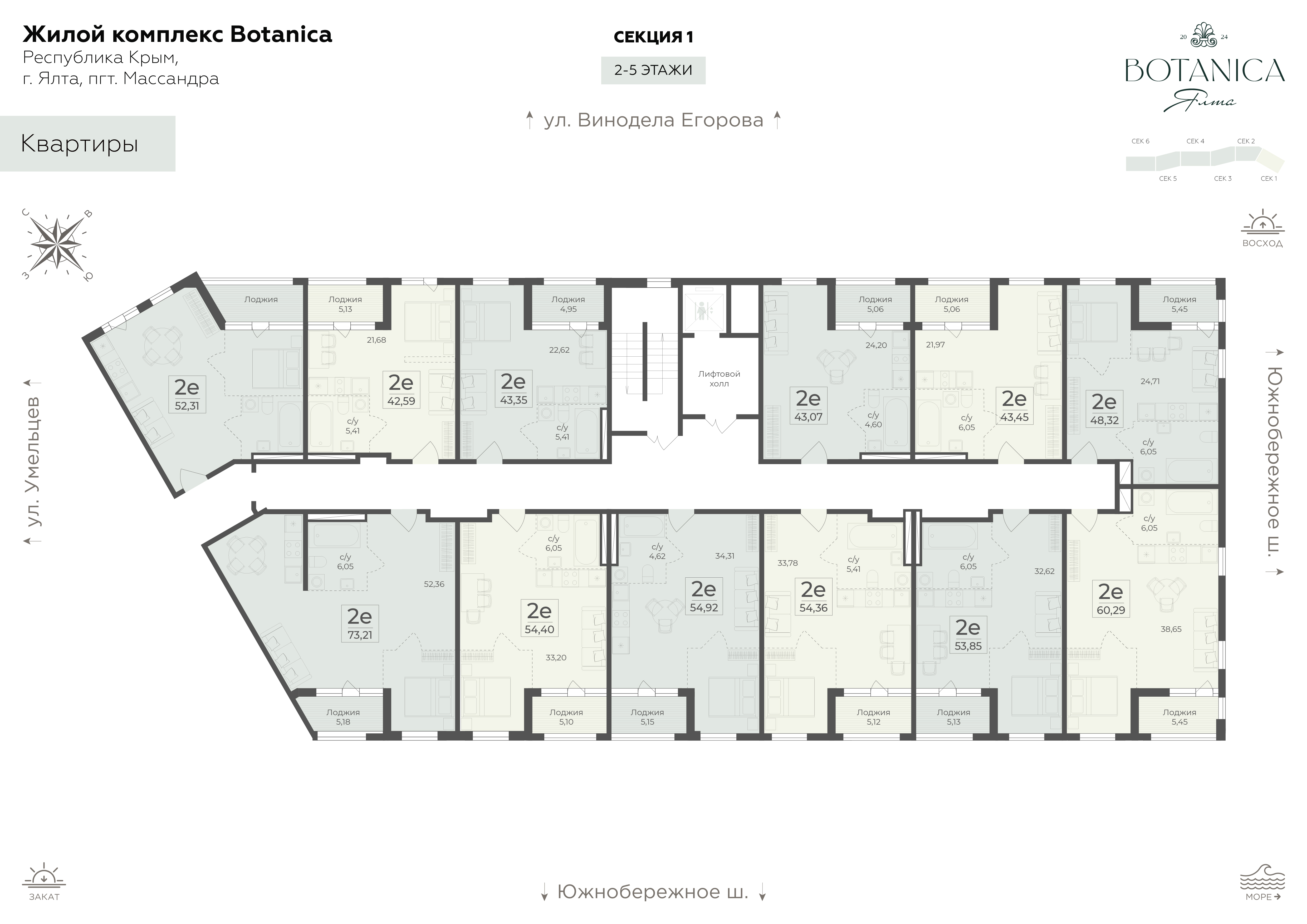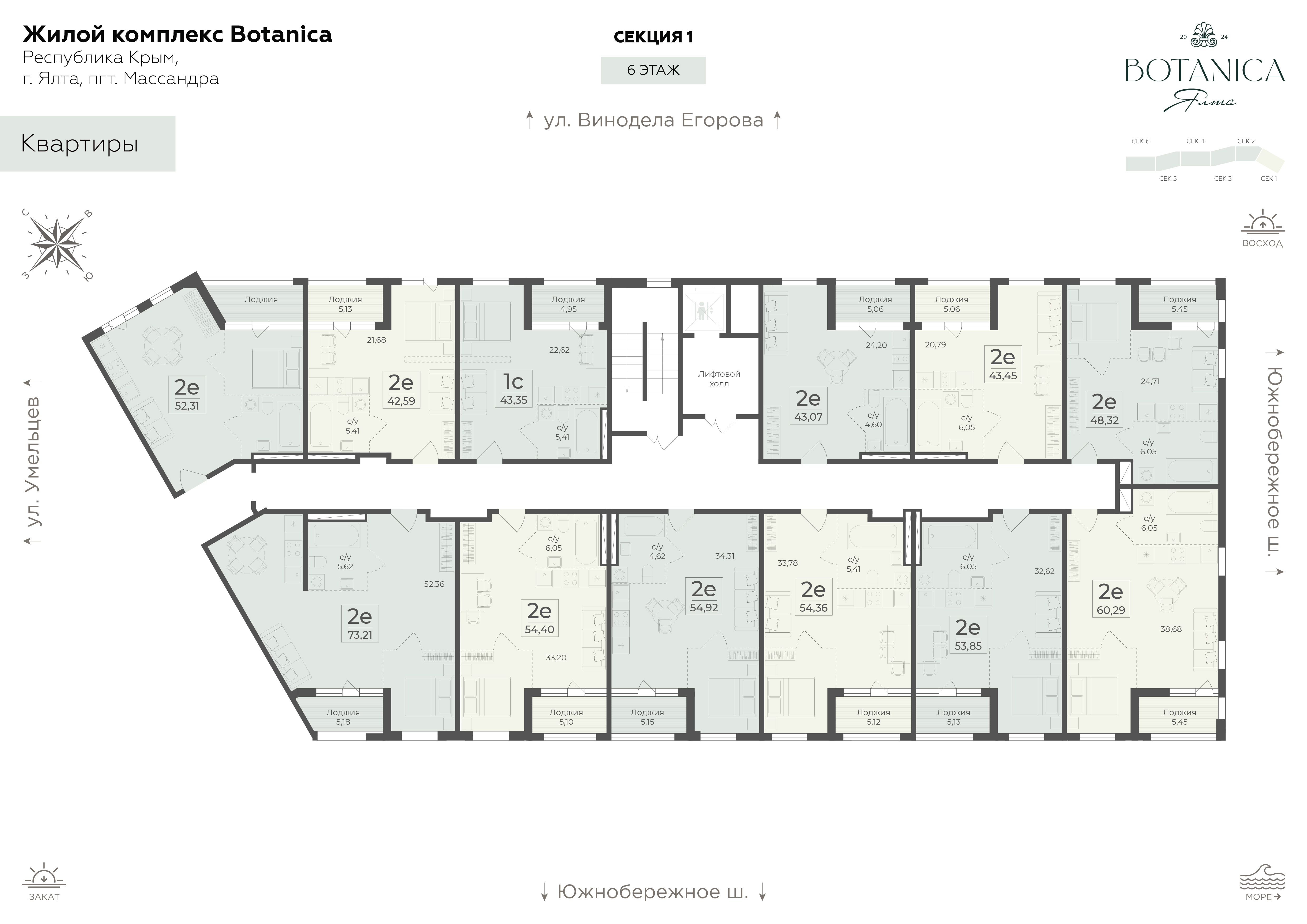 Жилой комплекс бизнес-класса Ботаника располагается в престижном районе Массандры. Комплекс находится на возвышенности, поэтому из всех окон квартир открываются захватывающие панорамы на морскую бухту, горные вершины и заповедный лесной массив. Расположенная рядом с Ялтинским горно-лесным заповедником Ботаника будто становится его естественным продолжением.