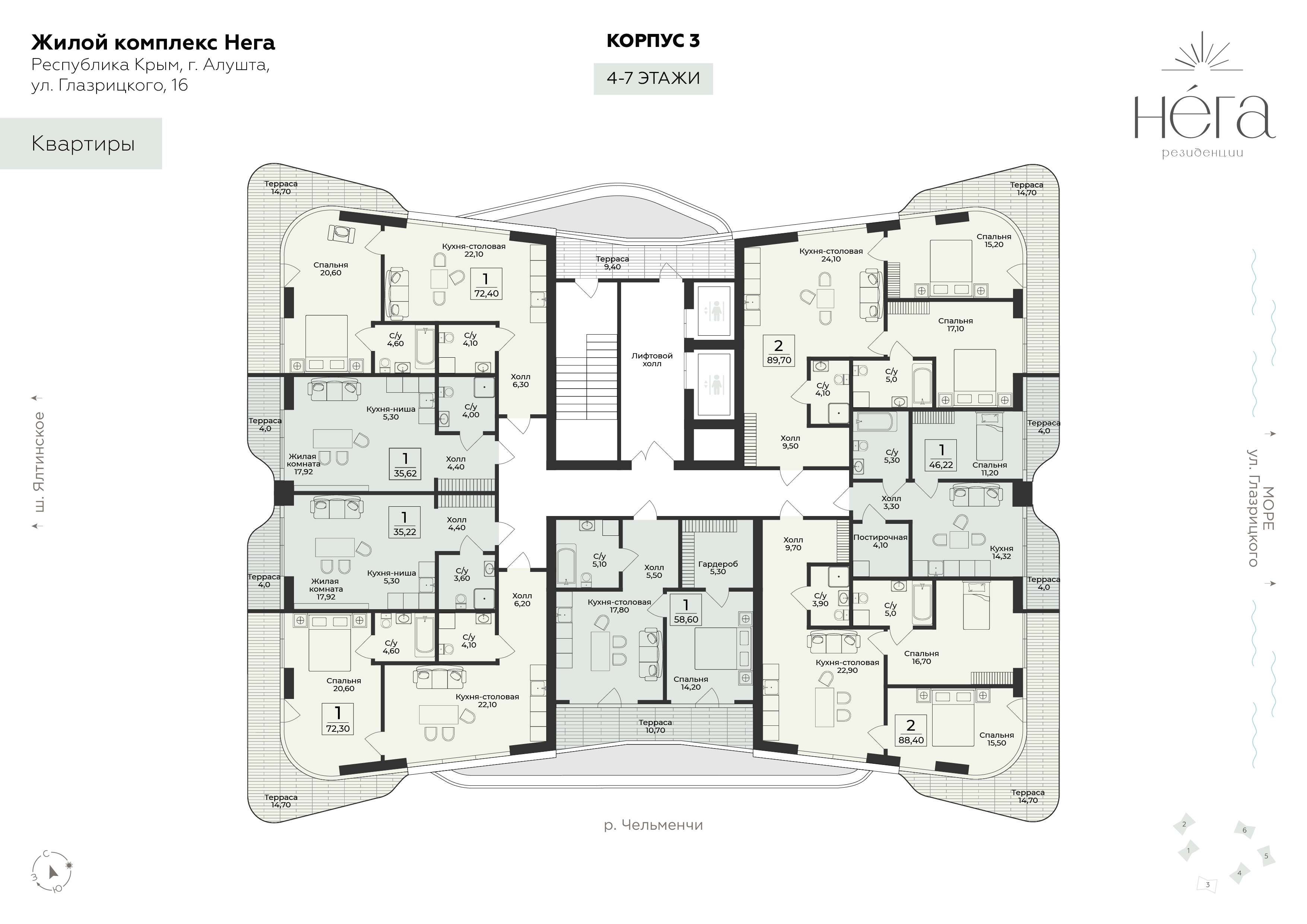 «Нега» – тихая природная роскошь в городской среде. Премиальный жилой комплекс возводится в уединенной части Алушты, в самом престижном районе курорта – Профессорском уголке, неподалеку от самой протяженной набережной Крыма, где снимался фильм «Кавказская пленница». Комплекс окружен многовековым хвойным лесом, вековыми кедрами, стройными кипарисами и редкими реликтовыми растениями.